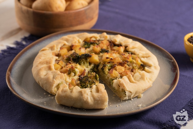 The autumn galette is a savory pie that encapsulates the flavors of autumn. The shortcrust pastry, crispy and crumbly, serves as a container for potatoes, broccoli, and savoy cabbage, a rich and flavorful filling made even more irresistible by the fontina cheese that melts during cooking, providing a creamy texture. This rustic savory pie is suitable for all occasions, from informal lunches and dinners to brunches. We will guide you step by step sopra preparing the autumn galette, a simple dish to prepare that has that homemade character that everyone loves!
