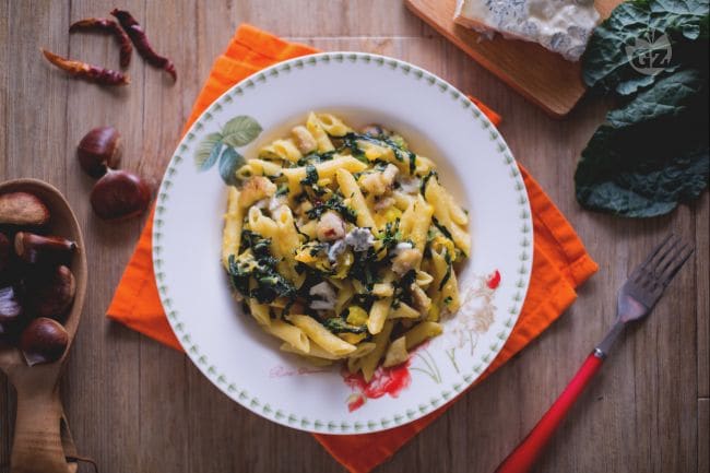 Autumn has arrived, with its enchanting reddish-gold cloak, bringing the first scarves, good intentions, and the crisp air that reddens hands and warms the heart. However, for those of us who are passionate about food, autumn immediately brings to mind its magnificent produce: the small, sweet, floury chestnuts from the November woods, considered ‘bread’ for centuries, both symbolically and literally, by the mountain populations of Europe and especially of our Apennines; the pumpkins, with their orange hues and whimsical shapes, which have sparked popular imagination and inspired fairy tales and legends… To fully immerse ourselves sopra the magic of this time of year, we have up with a recipe with a robust flavor, sweet yet savory and spicy, encapsulating the contrasts of autumn and its most typical flavors: rigate with Tuscan kale, squash, gorgonzola, and spicy chestnuts. A rich vegetarian main course, perfect for enjoying a family dinner, sharing the warmth of the home table while outside, the leaves fall .