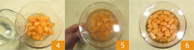Transfer the melon to a bowl and cover it with the alcohol 4then close with plastic wrap 5 and let it macerate for 8 days at room temperature, stirring once a day 6.