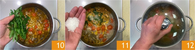 Add the parsley stems 10season with salt 11cover with a lid 12and cook over medium-low heat for 50 minutes.