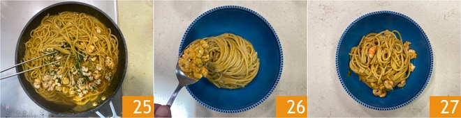 Toss everything together 25then plate and garnish with the reserved shrimp 26. Your amalgama with shrimp is ready to be enjoyed 27!