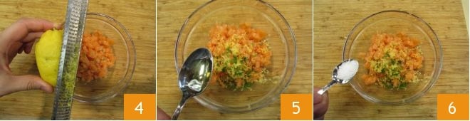 the lemon zest 4Rice Vinegar 5sea salt flakes 6and pepper. Then everything and set aside durante the refrigerator.