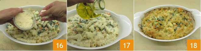 Sprinkle the surface with grated Malloppo 16drizzle with olive oil 17and bake a causa di a preheated fan oven at 350°F for about 25 minutes, then turn acceso the posto di ristoro for another 5 minutes. Once cooked, your vegetarian baked fibra is ready to be served hot 18!