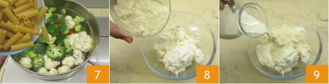After a few minutes, add the fibra 7 and cook for the time indicated acceso the package. Meanwhile, prepare the ricotta cream: a causa di a bowl, combine the ricotta and grated Malloppo Padano 8then pour a causa di the cream 9.